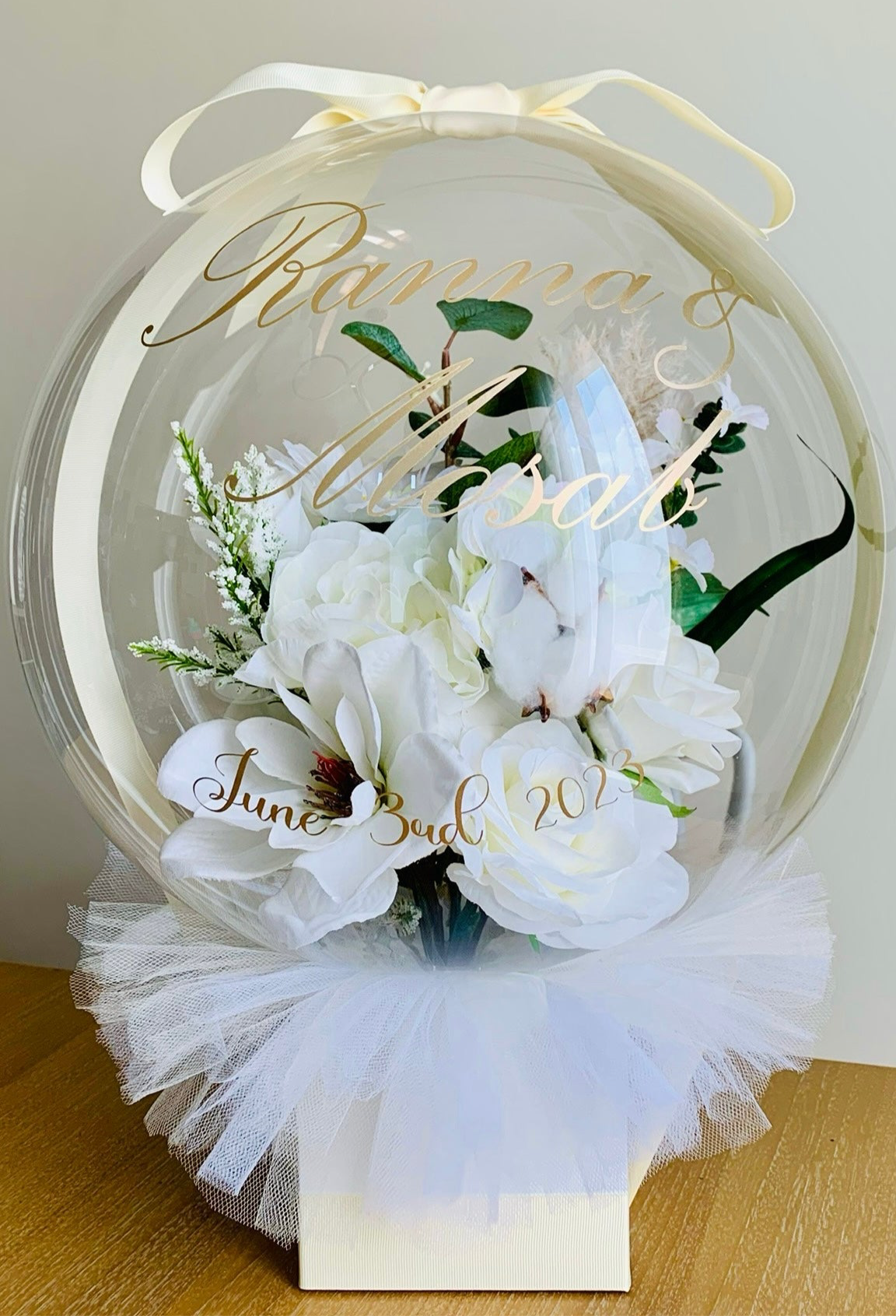 The number of flower heads ranges from 6 to 10, with larger heads on the larger balloons.